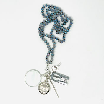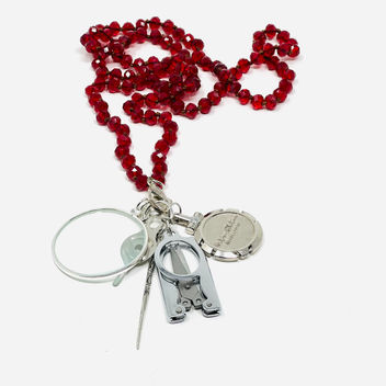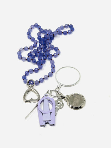 From Victoria Whitson, a necklace to wear while traveling or at a community stitching table with all your tools at arms length.